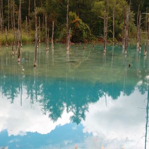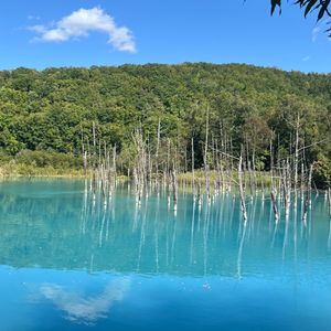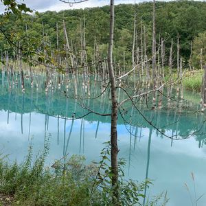 青い池は不思議な感じでキレイでした。