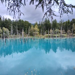 当日は曇り空だったが、青い池は十分美しく、その神秘的な色に感動した。