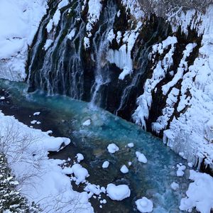 青い池は、全て雪で覆われていたため予想外でしたが滝は大迫力で見応えがありました!
