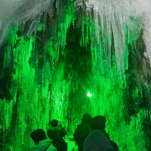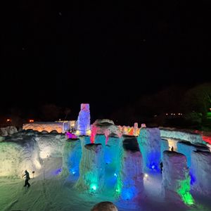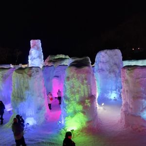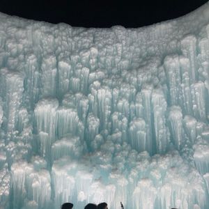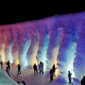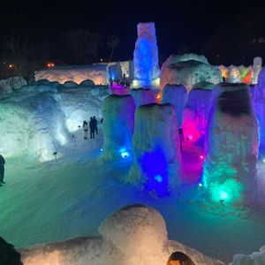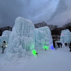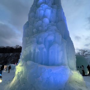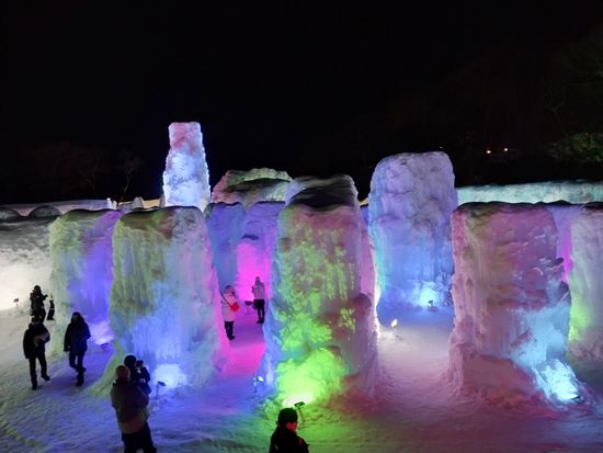 支笏湖の湖水を吹きかけて凍らせた様々なオブジェがナチュラルブルーに輝き、またライトアップされ幻想的でとても素敵でした。