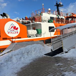 ガリンコ号は欠航、流氷は沖に流されて全く見えず。帰りは高速道路が通行止めで、21時の予定が24時着。「流氷は見られないこともある。道路状況によっては予定通りに行かないこともある。」と注意事項にあったので、仕方ないとは思うが24時着はあまりに遅い。ドライバーや添乗員が気の毒になった。出発前にはガリンコ号欠航は分かっていたし、気象の注意報も出ていたのでツアー催行の中止でも良かったのでは?
