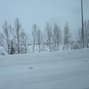 道中もずっと吹雪に近い状態でした。ただ紋別は比較的雪が少ないんですね。晴れてました。