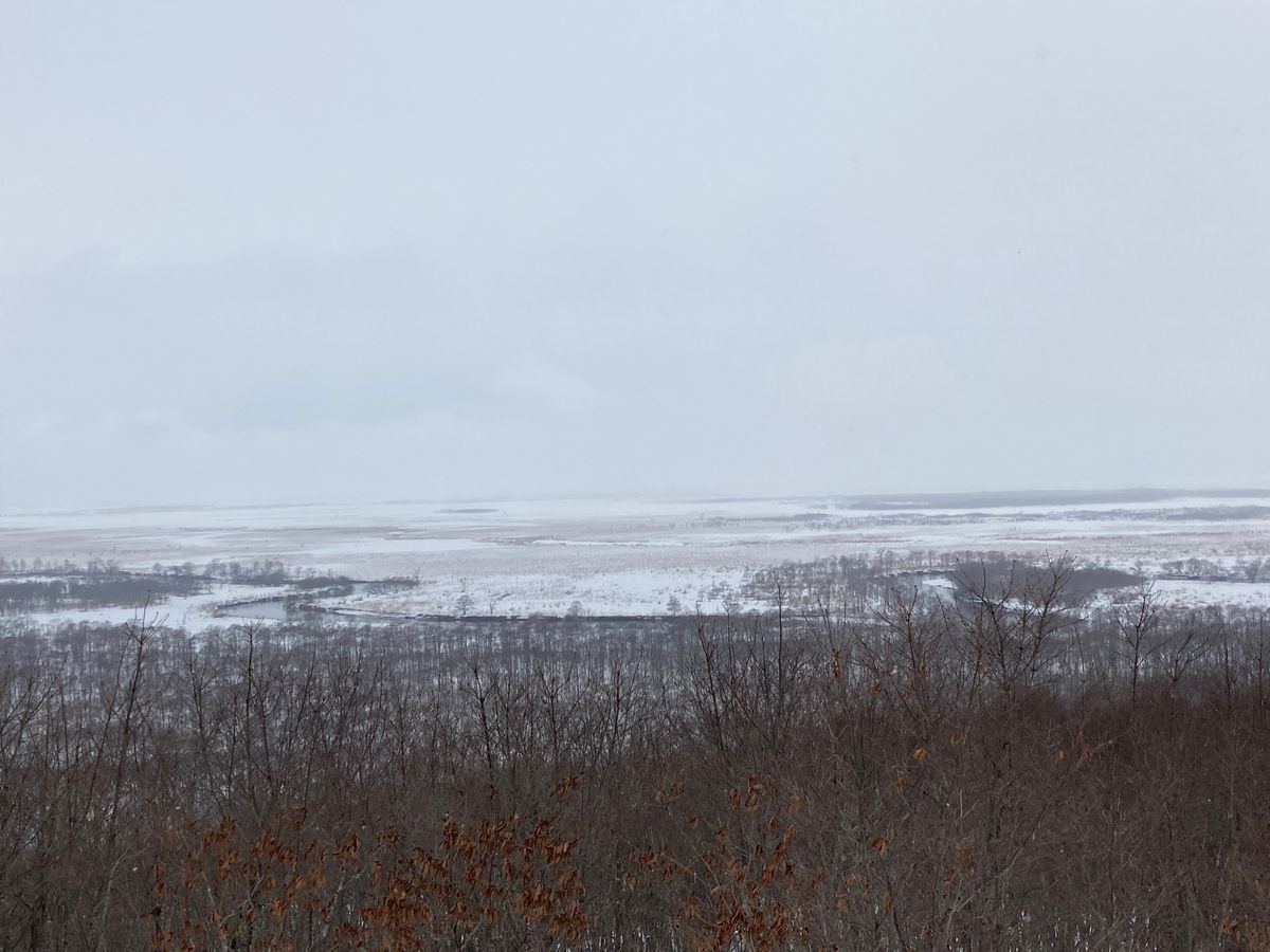 細岡展望台からの景色は非常に素晴らしかったですが、雪で白一色だったのでより素晴らしい景色を見るのであれば夏のほうが良いのではないかと思いました。その後運転手さんから「コーヒーを飲みませんか?」と提案され、どこかに自販機でもあるのかな?と思いつつ「良いですね!」と答えると、ビジターセンターへ連れて行っていただきました。