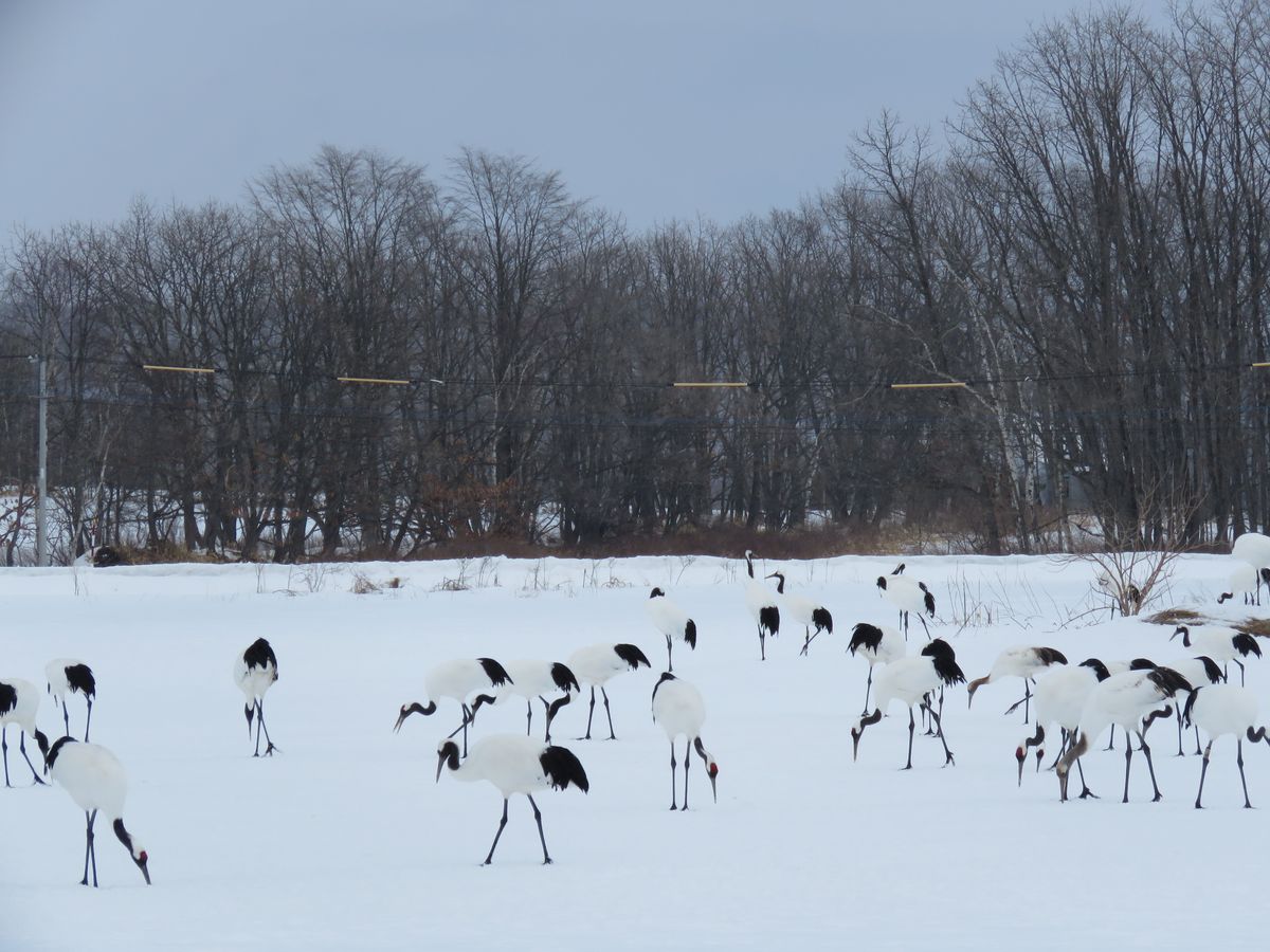 ビジターセンターでコーヒーを飲みながら、またしても運転手さんといろいろな話をし、お土産を多少購入して、続いて伊藤サンクチュアリへ行きました。三脚を立てて立派なカメラを持った人たちで最前線は埋め尽くされていましたが、僅かな隙間を縫いズームを駆使してきれいにタンチョウヅルを撮ることができました。タンチョウヅルはとてもたくさんいました。