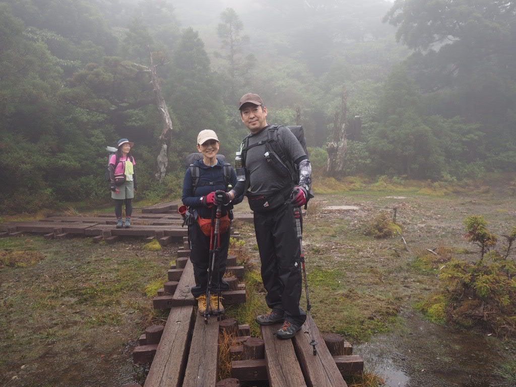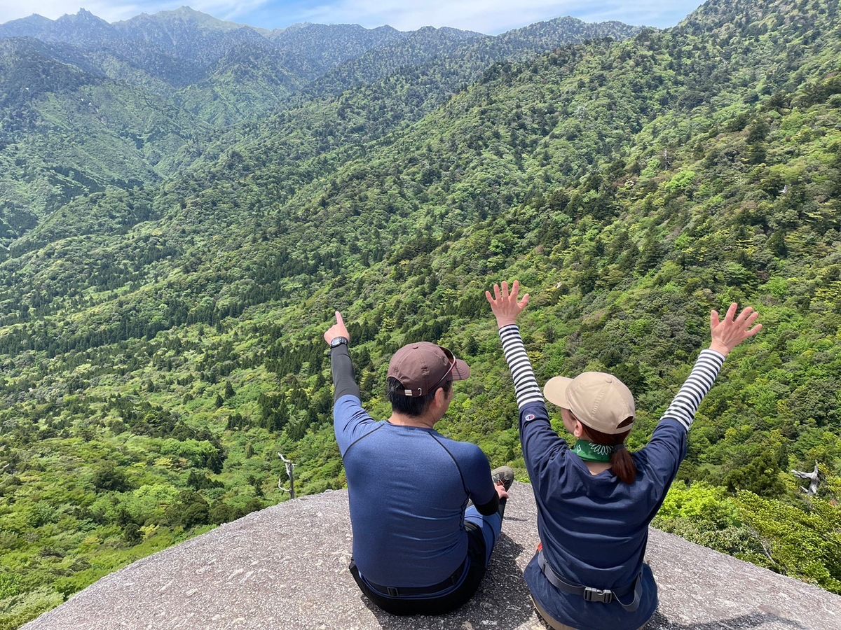 4月30日〜5月1日に夫婦で屋久島ガイド山好きの池田さんのガイドで宮之浦岳〜縄文杉〜白谷雲水峡の縦走一泊二日キャンプツアーに参加しました。昨年9月に結婚35周年の記念にと予定していたのですが台風が直撃してやむ無く断念したので今年こそはとリベンジの気持ちでした。初日は登山開始こそ雨も止み時折り晴れ間も見える天候でしたが途中から雨風とも強くなりとても寒くて大変でした。それでも池田さんとの楽しい会話や案内のお陰で無事に登頂できました。宮之浦岳山頂からの景色は最高でした。その夜の山小屋での池田さん手作りの豚の生姜焼きと炊き立てご飯は身も心も温まりました。三岳のお湯割りに鯖節とチーズのクラッカーも相性がぴったりで最高でした。翌日は4時に山小屋を出発して縄文杉を目指しましたが天気にも恵まれ朝焼けでオレンジ色に輝く縄文杉を間近に見られてとても感動しました。太鼓岩での景色も絶景で疲れも吹っ飛びました。白谷雲水峡の神秘的な苔の世界にも魅せられ本当に感動的でした。ガイドの池田さんとツアーをご一緒した女性の方も気さくな方で本当に楽しくて感動の二日間でした。