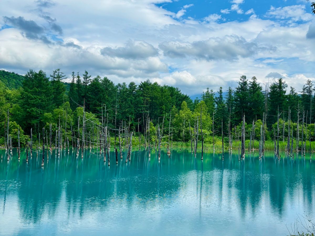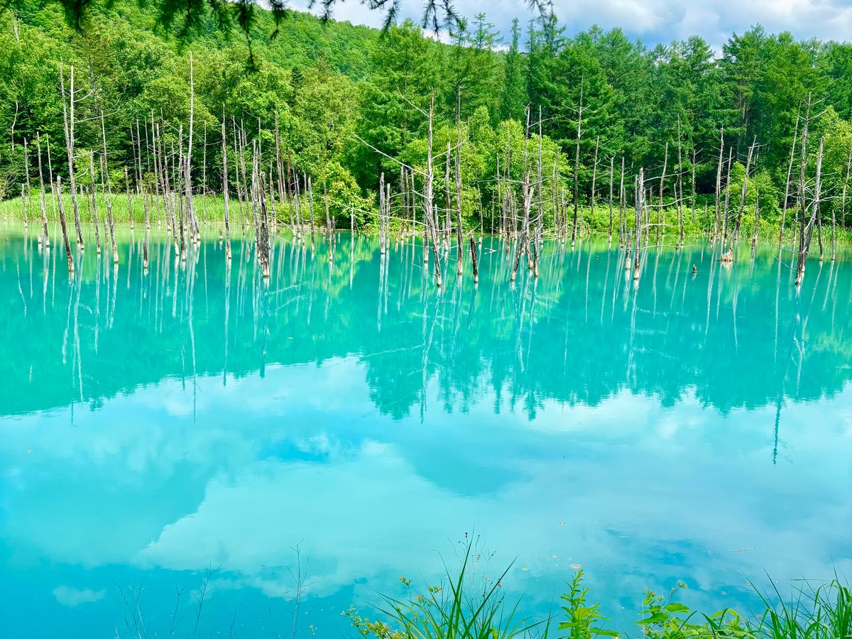 青い池は本当に青く綺麗です。