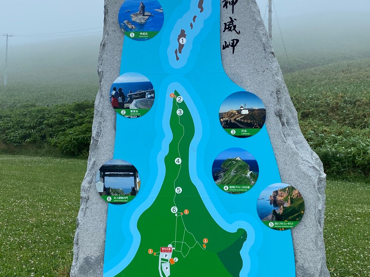 神威岬は先端の灯台まで歩くなら往復1時間程度(50代夫婦が普通に歩いて)かかります。結構アップダウンもあります。遊歩道も途中狭いところもあり、観光客渋滞になることもあります。ただ一見の価値はあります。