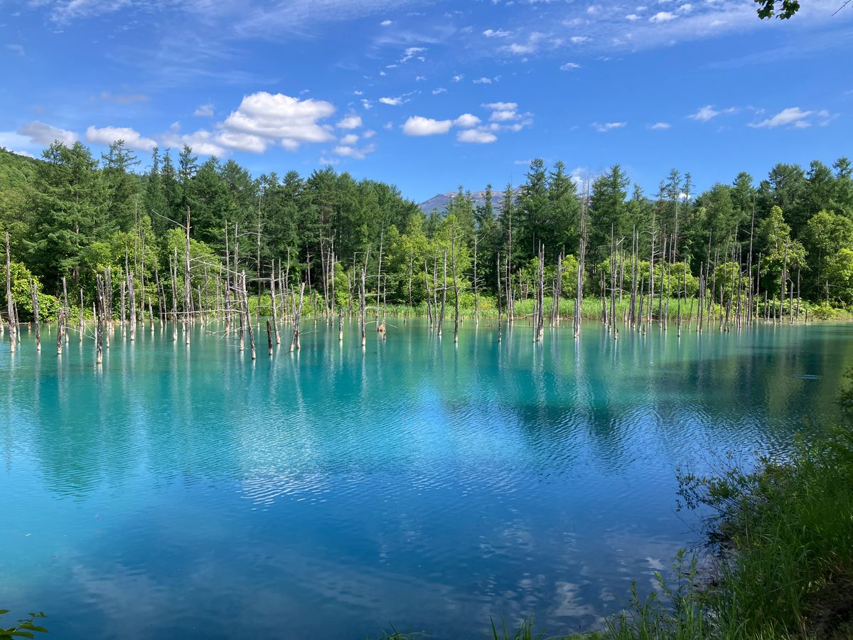 念願の青い池がまさしくコバルトブルーで鮮やかできれいでした。