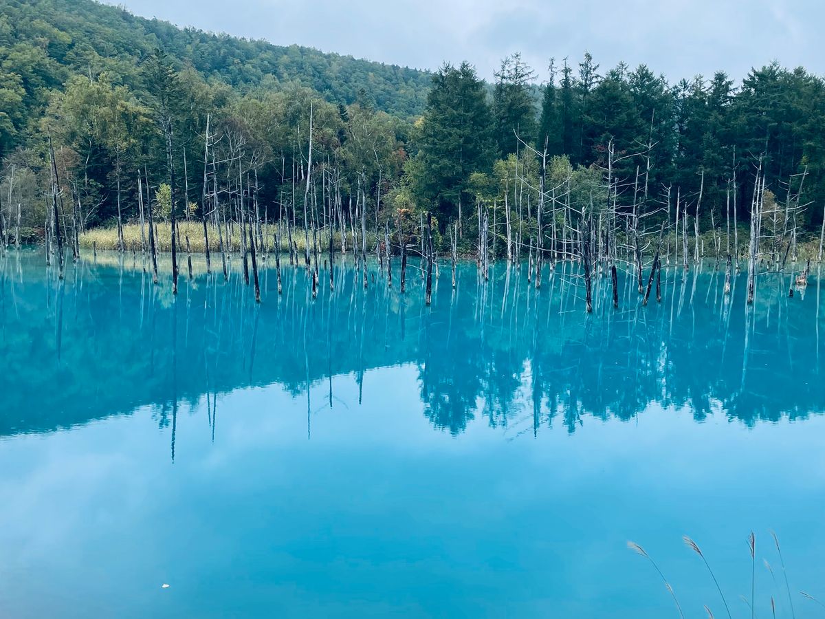当日は曇り空だったが、青い池は十分美しく、その神秘的な色に感動した。