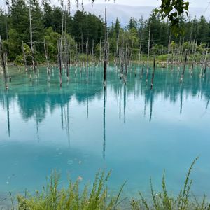 何の理由かわからないまま、青い池も行かなかったです。ガイドさんに聞いたら、「はいりません」だけで答えました。