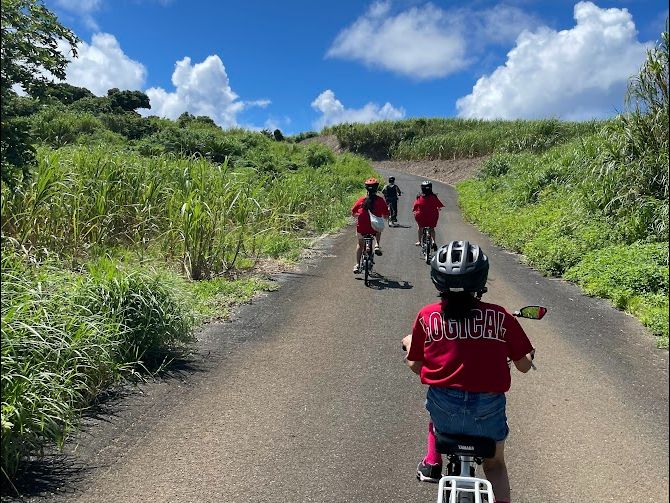 車でガイド本に載っている目的地に行くだけでは絶対に味わえない経験ができました!ガイド本には載っていない島民の生活に密着したスポットを、豊富な知識で、わかりやすく説明していただきました。自然科学から歴史などの人文科学まで、幅広い知識をお持ちで、子どもにもとっつきやすい話題を選びながらお話してくださり、とても楽しい時間でした。見渡す限りのサトウキビ畑を自転車で走る爽快感!丘から視界に広がる海を眺めながら下る坂道!特徴ある集落めぐり!大変お世話になりました。お二人に案内していただき満足感100%でした。どうもありがとうございました。