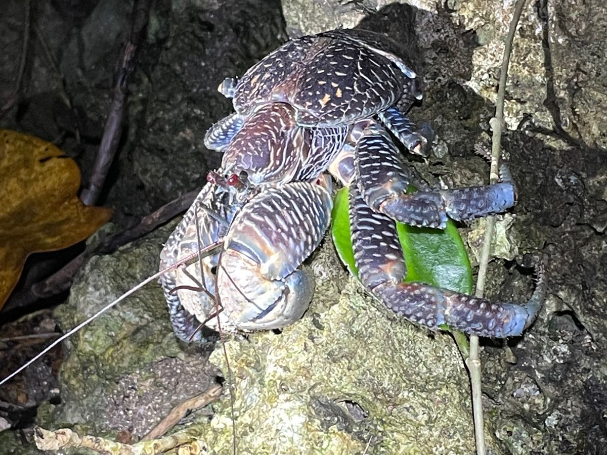 岩場の隙間にいるヤシガニがかろうじて見れました。野生/自然相手なので仕方ないと思います。ただ見れなかった時用に写真などを使って説明があっても良いなと感じました。星空鑑賞では見えている星の説明は特になく、キレイですね〜くらいだったので専門知識のある方にガイドして頂けたら満足度も違ったと思います。