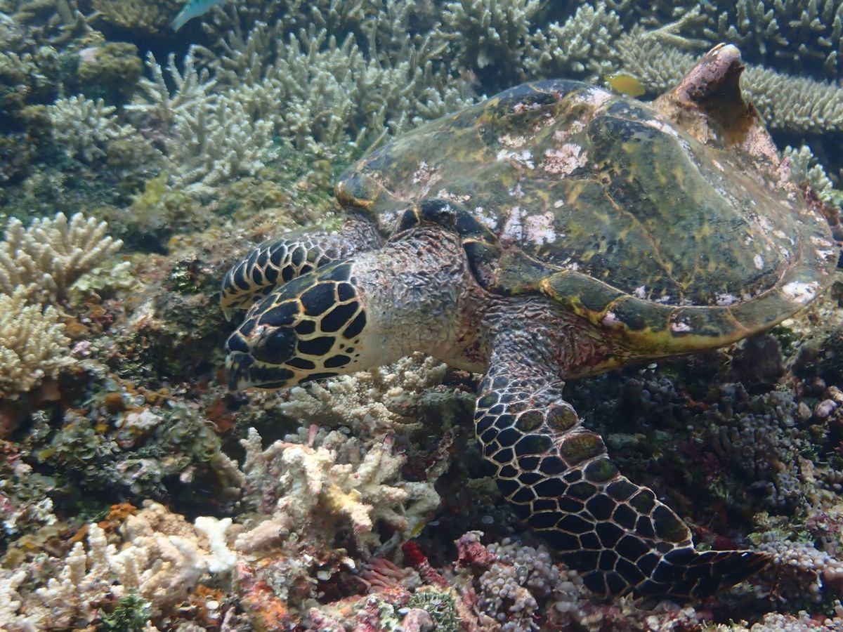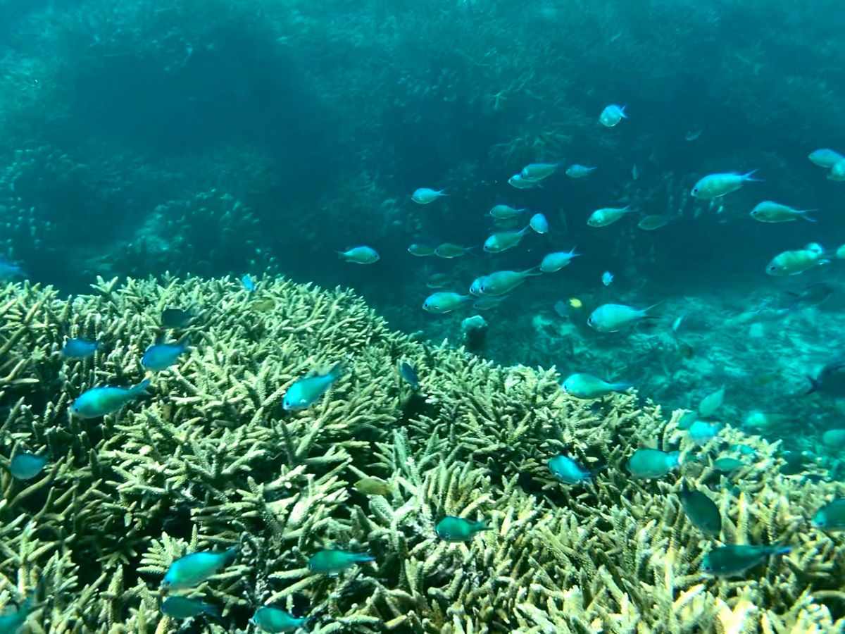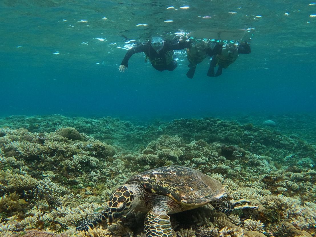 トレッキングの後のシュノーケリングでは、亀を見る事もできたし、沢山の魚と珊瑚が見れました。