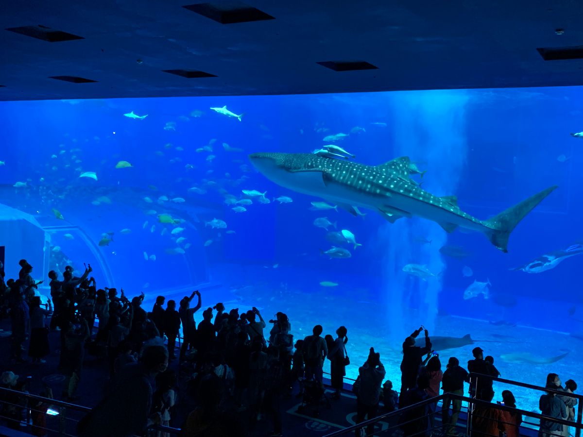 最初の訪問地である美ら海水族館では、お昼を挟んで2時間半ほど見学することができました。予め、お弁当を持参していたので、昼飯のために売店やレストランに並ぶ時間が不要だったため、時間的には余裕がありました。混在時だと、全部を観るにはギリギリかも知れません。