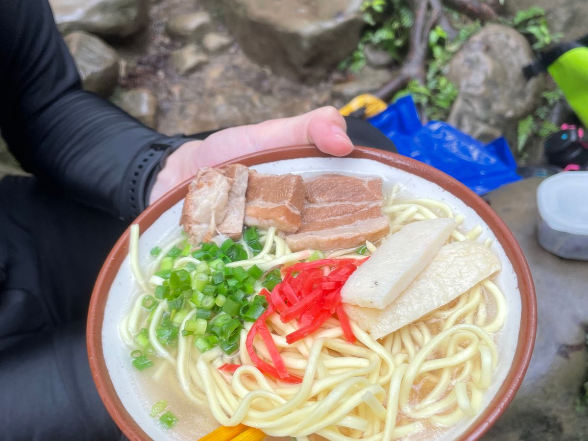 滝壺でひと泳ぎしたあと、ガイドさんがその場で調理した八重山そばをいただきましたが、とてもその場で作ったとは思えないクオリティで感動しました。正直、ツアーのお値段が他の会社と比べて少し高めかなとも思ったのですが、大自然の中でこんな美味しい八重山そばが食べれるなら納得です。道中、人数分の食事と機材を背負ってくださったガイドさんには感謝しかないです。