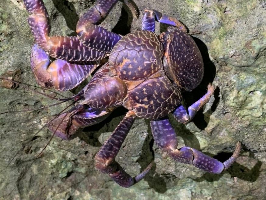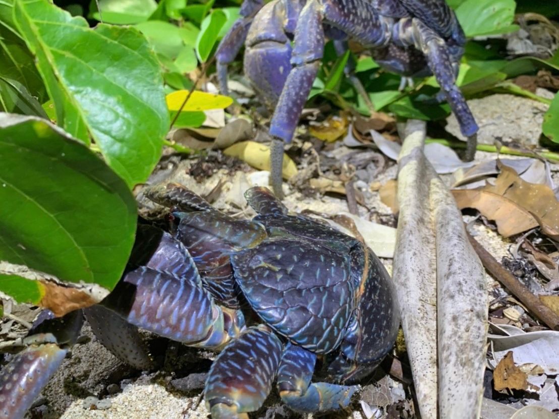 中でも1匹見れたらラッキーと言われるヤシガニがその日はなんと4匹も!野生のヤシガニは初めてでとても大きく迫力があり、参加者そしてガイドの方も一緒に大興奮!笑