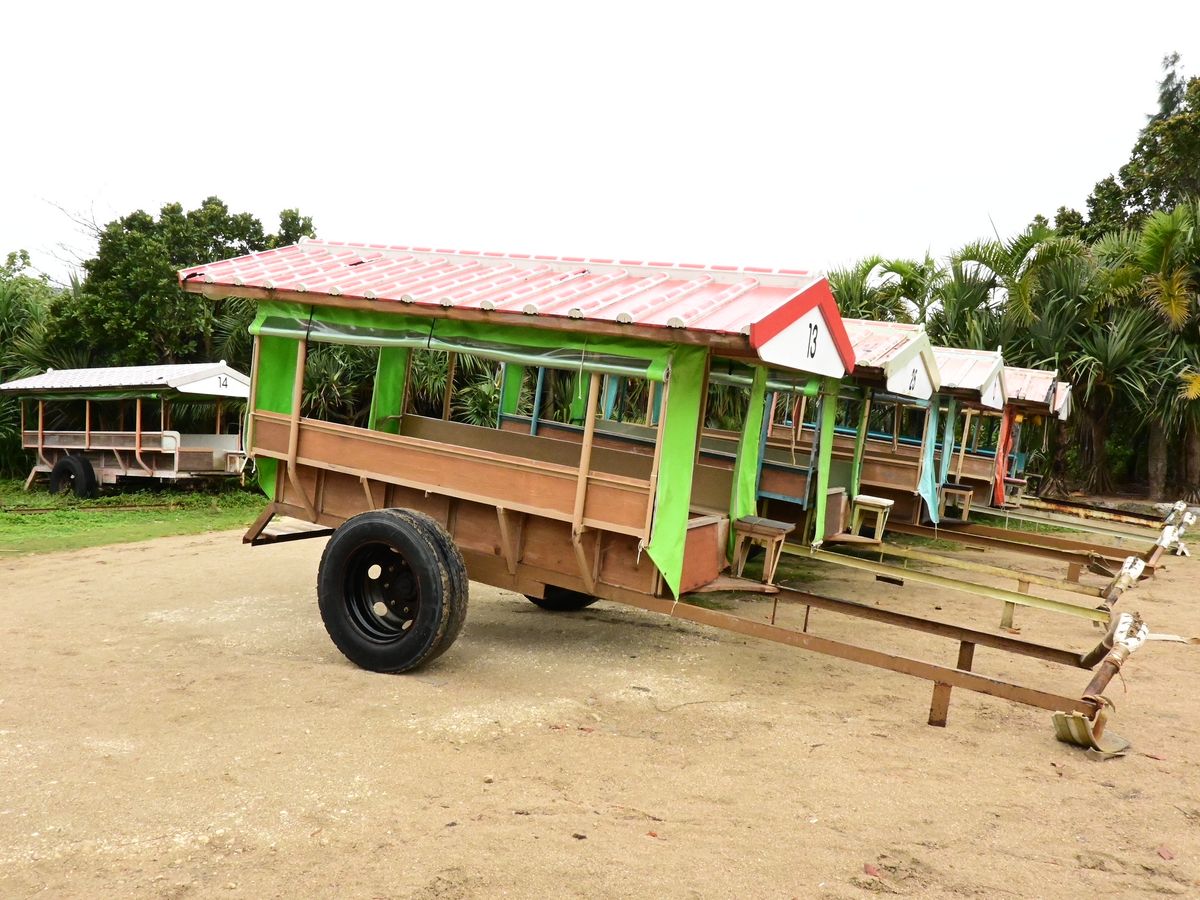 由布島では、海水が入ってくる西表島と由布島を結ぶ道を水牛に牛車を引っ張ってもらい島へとのんびり渡りました。