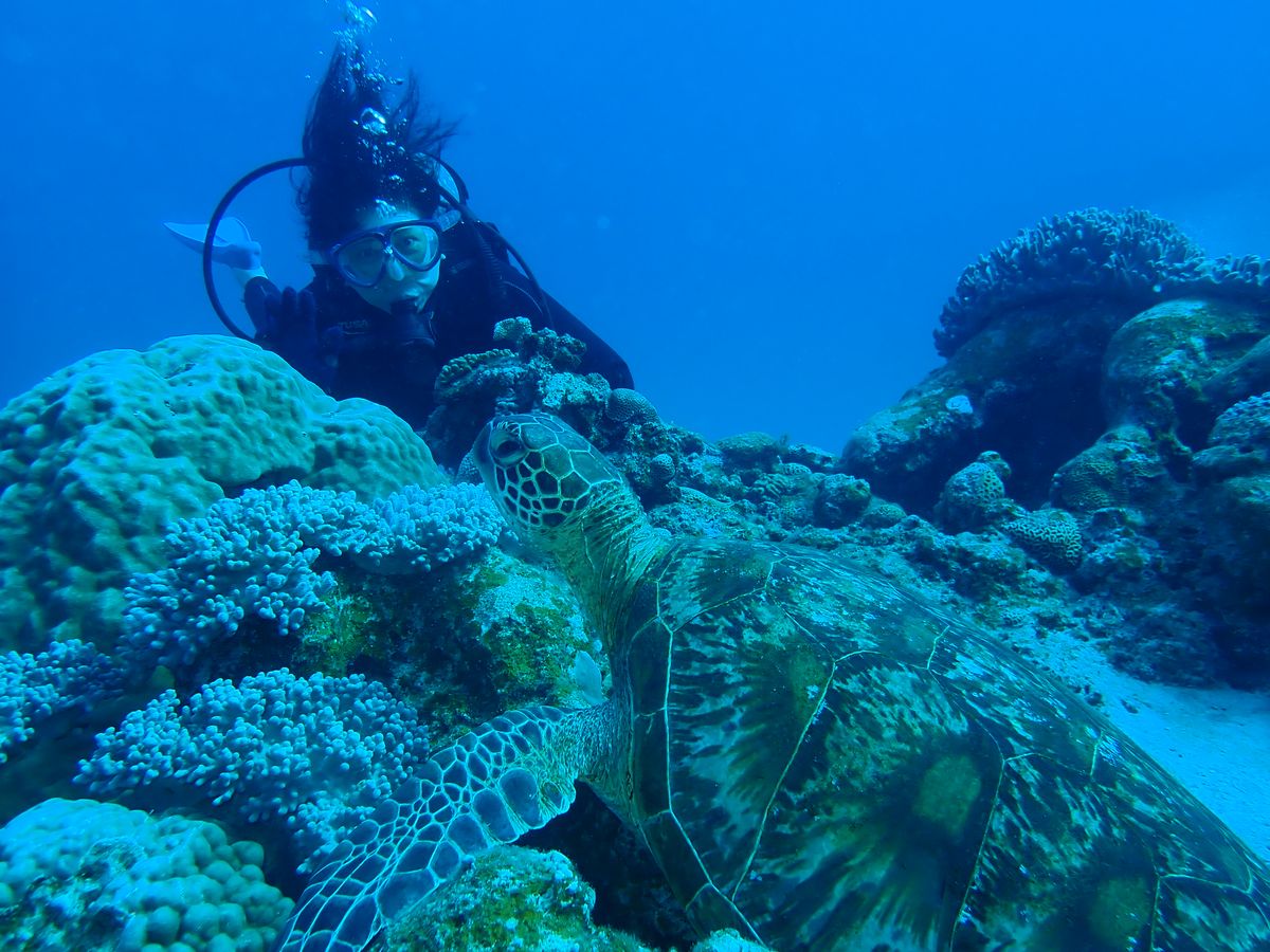 インストラクターの方ともう1人(カメラマンになってもらいました)の方と3人で潜りました。ウミガメに何回も出会えて幸せ‼︎水温は少し低めでしたが慶良間の海を楽しむことができました。