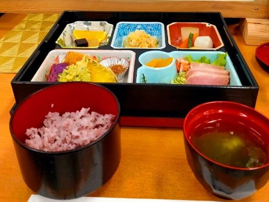 由布島では、自由行動で、適宜、指定された食堂でお弁当を食べました。