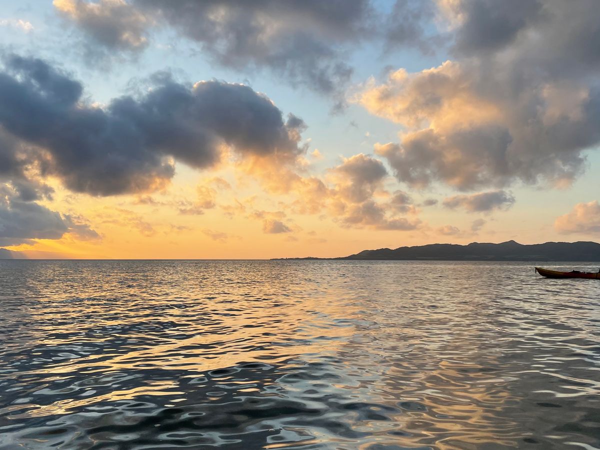 夕日か沈む瞬間は雲に隠れてしまいましたが、オレンジ色の空のグラデーションを楽しみながらカヤックも体験することができました。