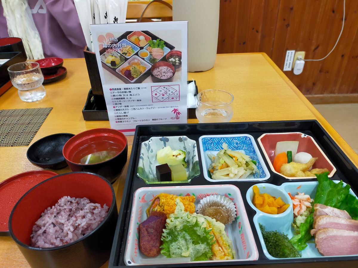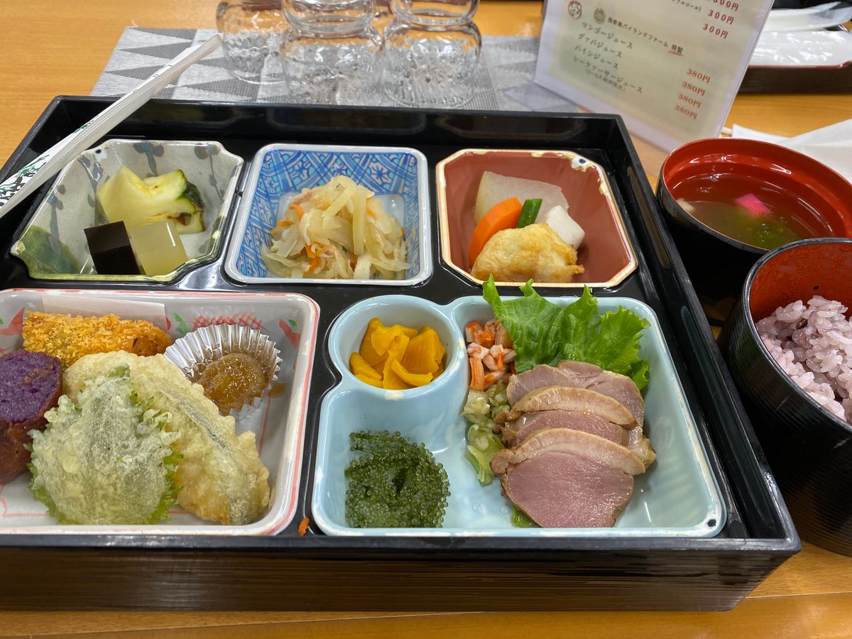 由布島特製幕の内弁当が美味しかったです。特に豚耳の味付けが最高です。海ぶどうもあり大満足でした。