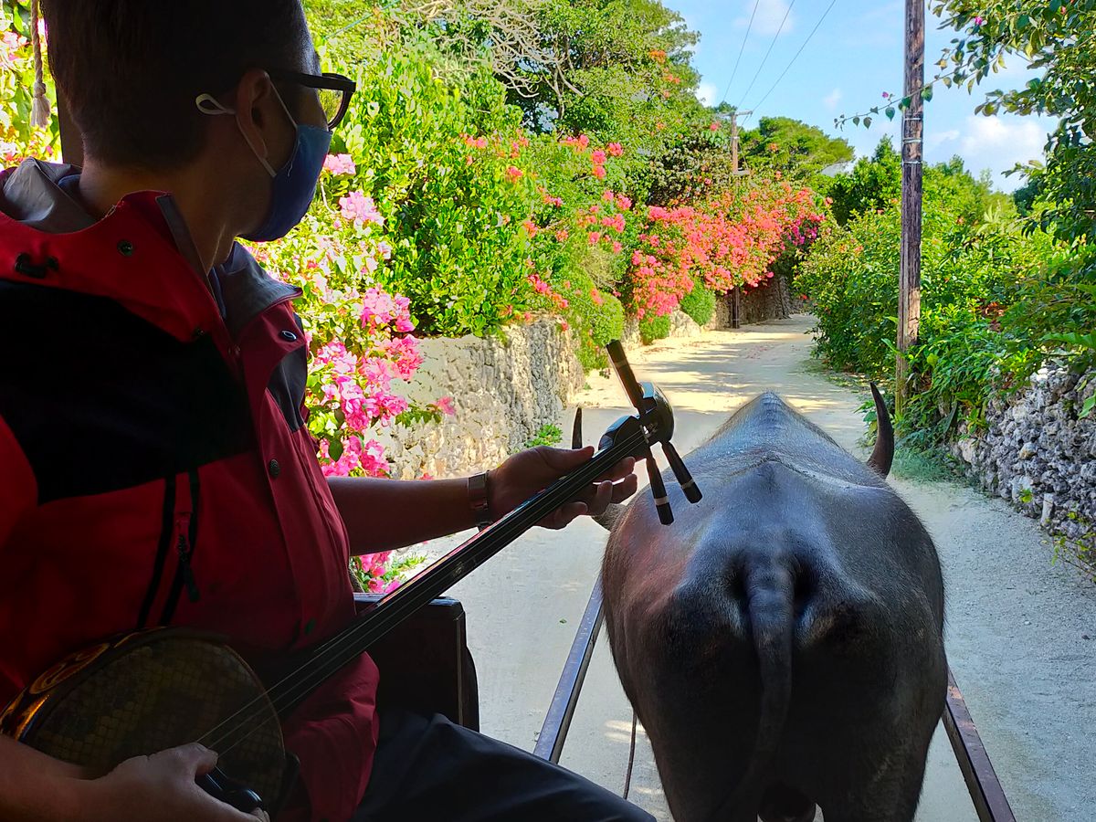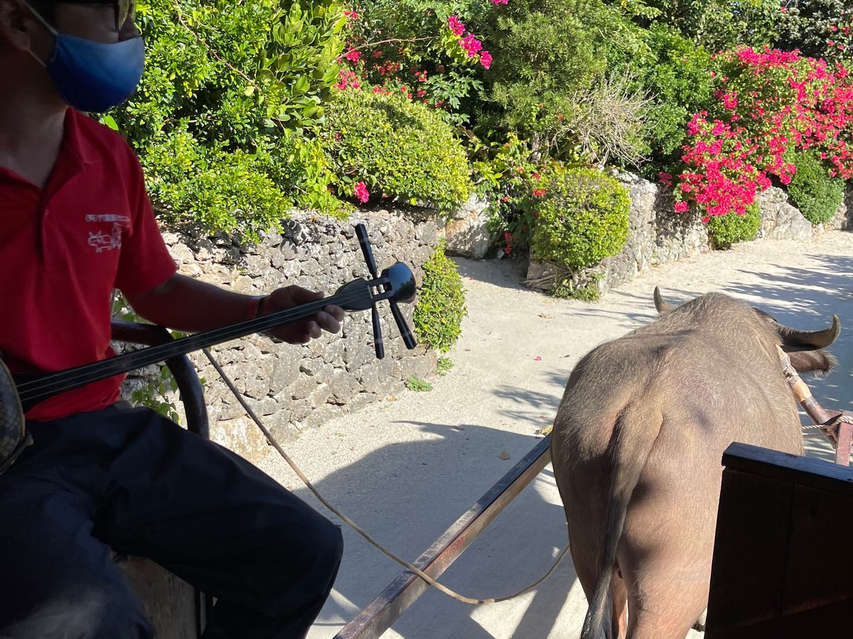 それは...静かな波の音とゆったり歩く水牛の足音、そしてガイドの方が奏でる三線の音色、それらが相まって、ちょっと不思議な、とても心地よい時間でした。