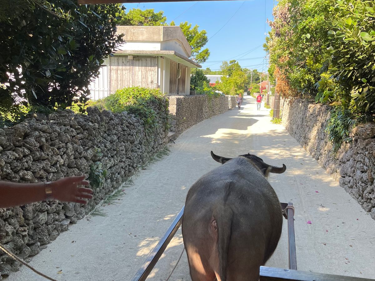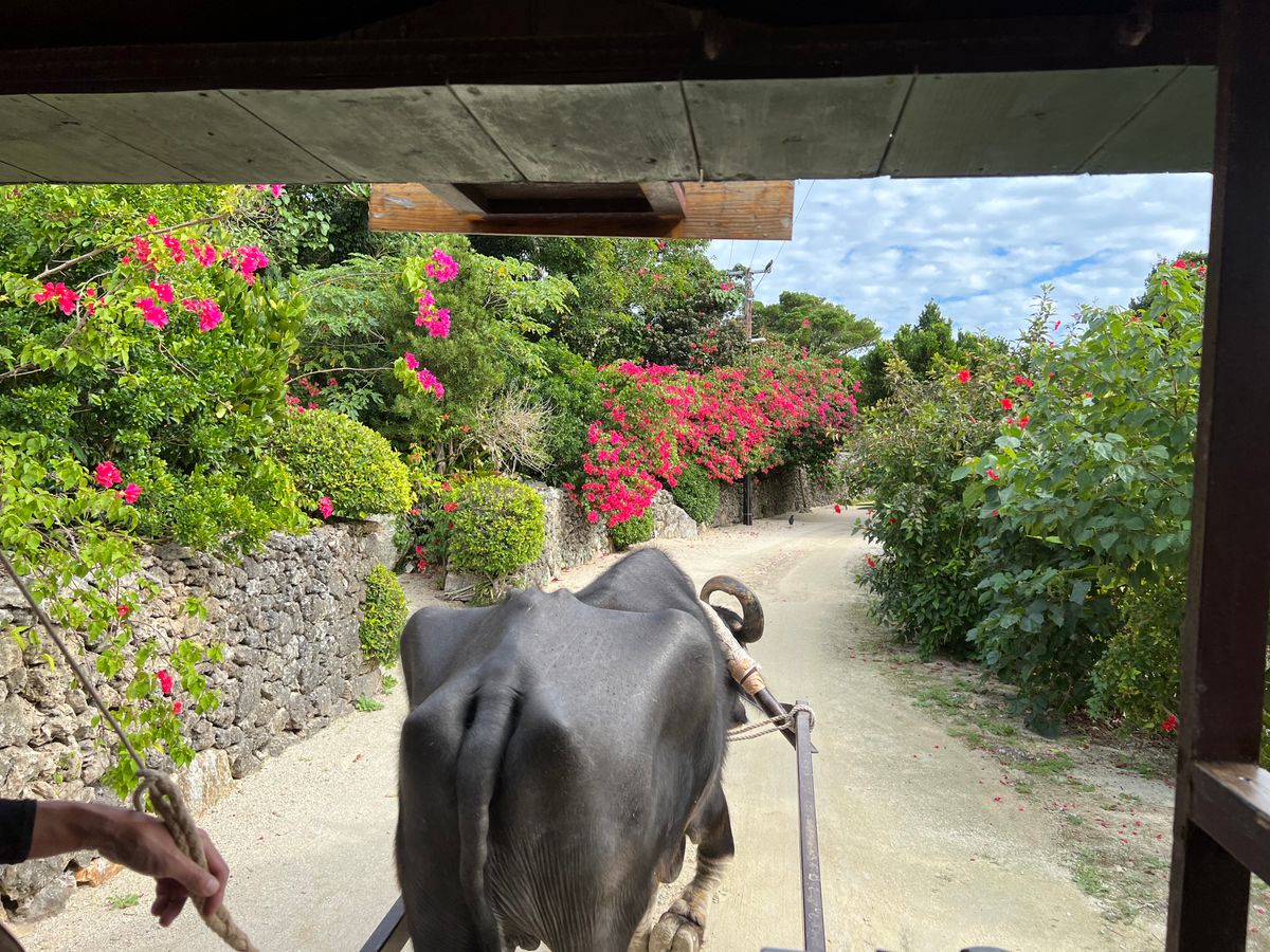 由布島への水牛車は楽しかったです。主役は水牛さんになり、追いついてきた仲間を振りかえるのんきな水牛さんはかわいかったです。癒される瞬間でした。