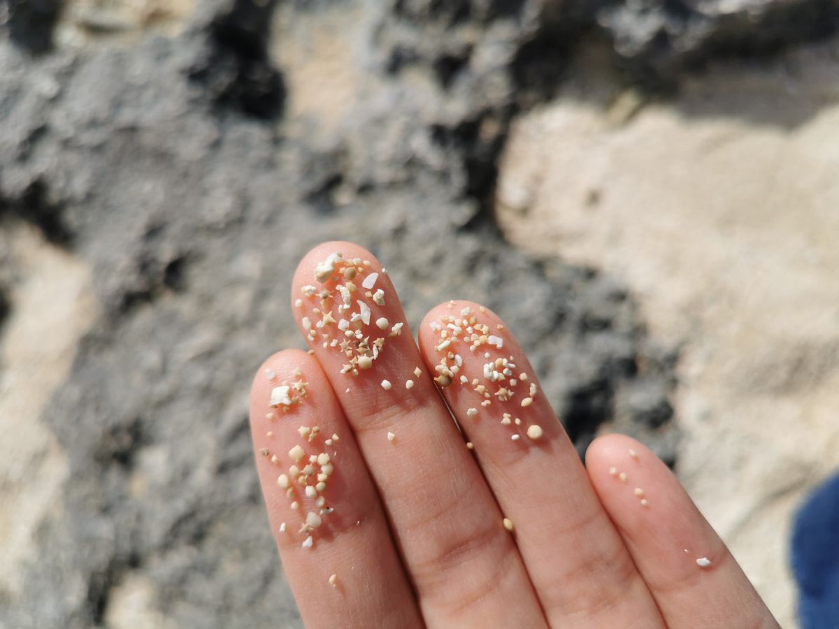 カイジ浜で可愛い星砂を見つけて幸せです。天気にも恵まれて、海がとてもきれいでした。