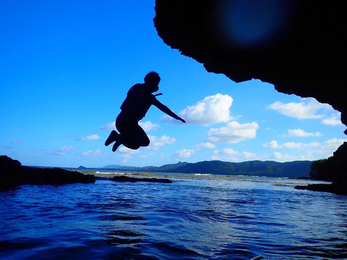 青の洞窟では写真を撮るだけでなく、またそこを回りながらお話しを聞かせて頂き、楽しい時間を過ごしました。ジャンプの写真がめちゃくちゃ綺麗で旦那もとても喜んでいました。