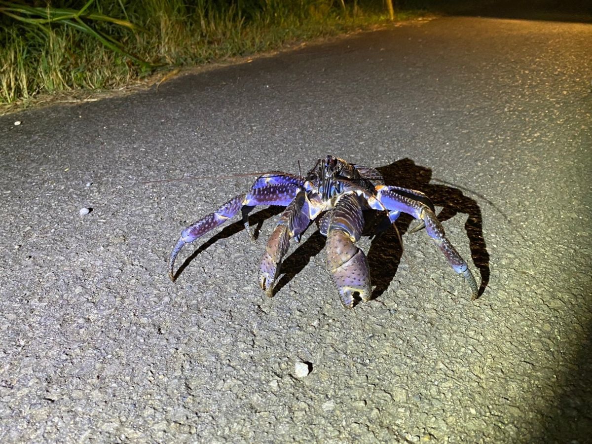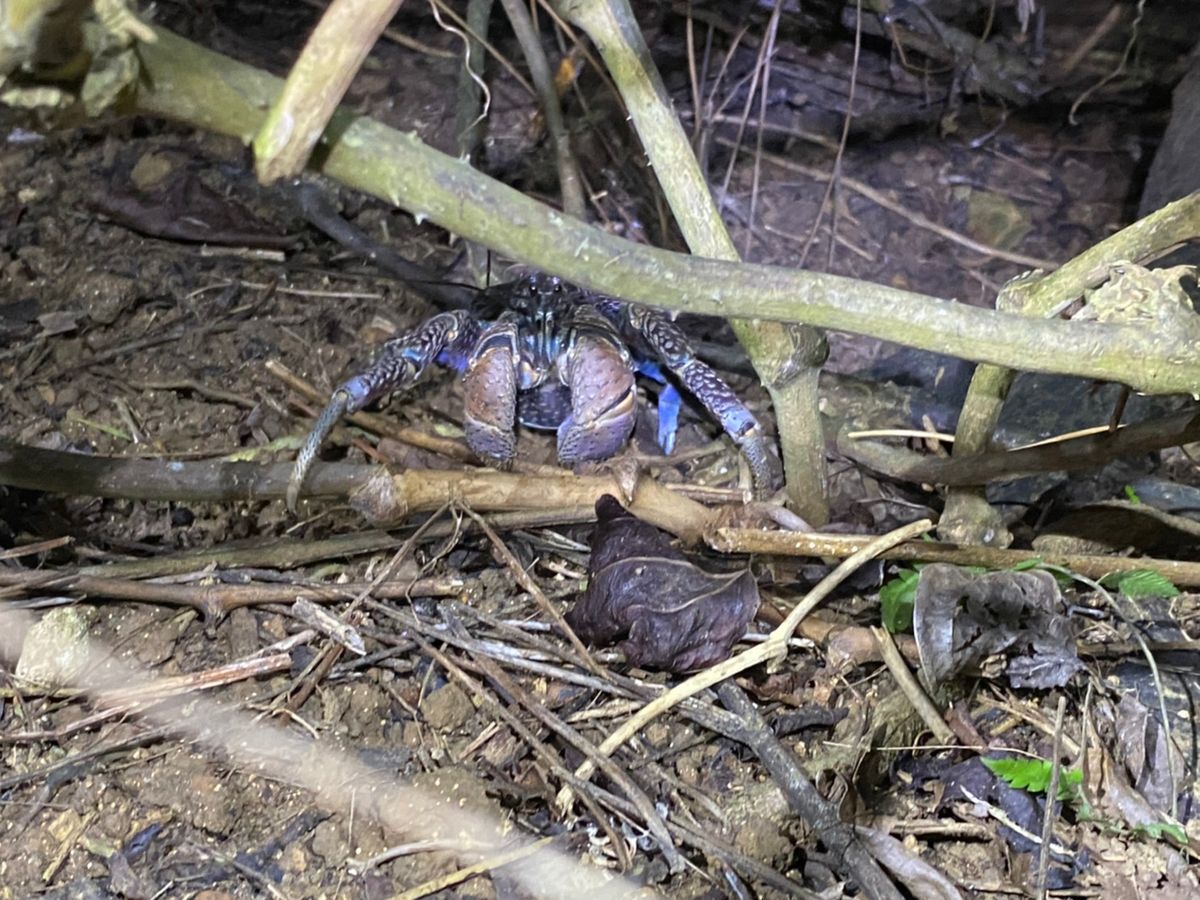 ジャングルに入ってからは、この時期珍しいと言われるヤシガニや、見たことないサイズのヤドカリ、さらには光るホタルの幼虫まで、新しく貴重な経験をたっぷりできました。帰り道ではフクロウにも遭遇できました。