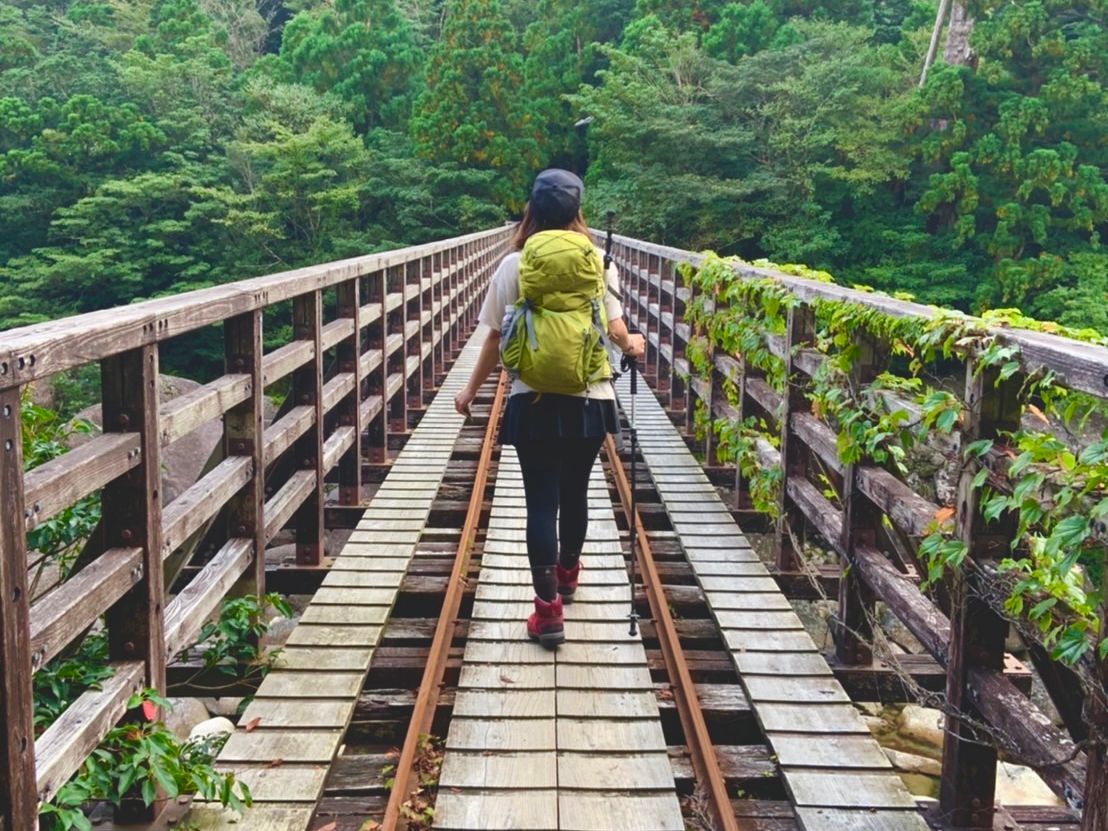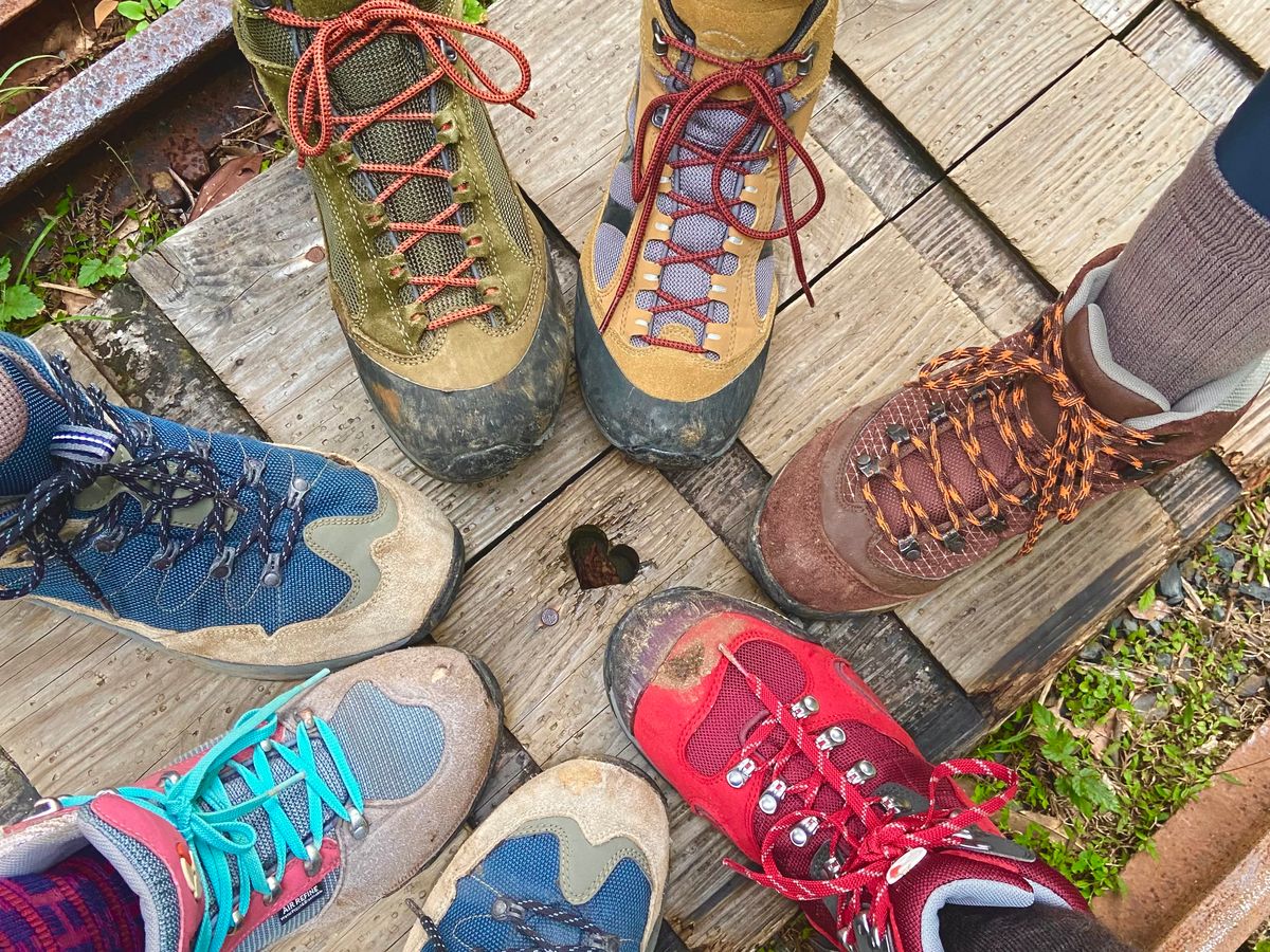 最初はトロッコ道に飽きて居た私は、戻りはトロッコ道に感謝をした。皆んなでトロッコ道のハートのスポットで円になってトレッキングシューズの写真を撮った!