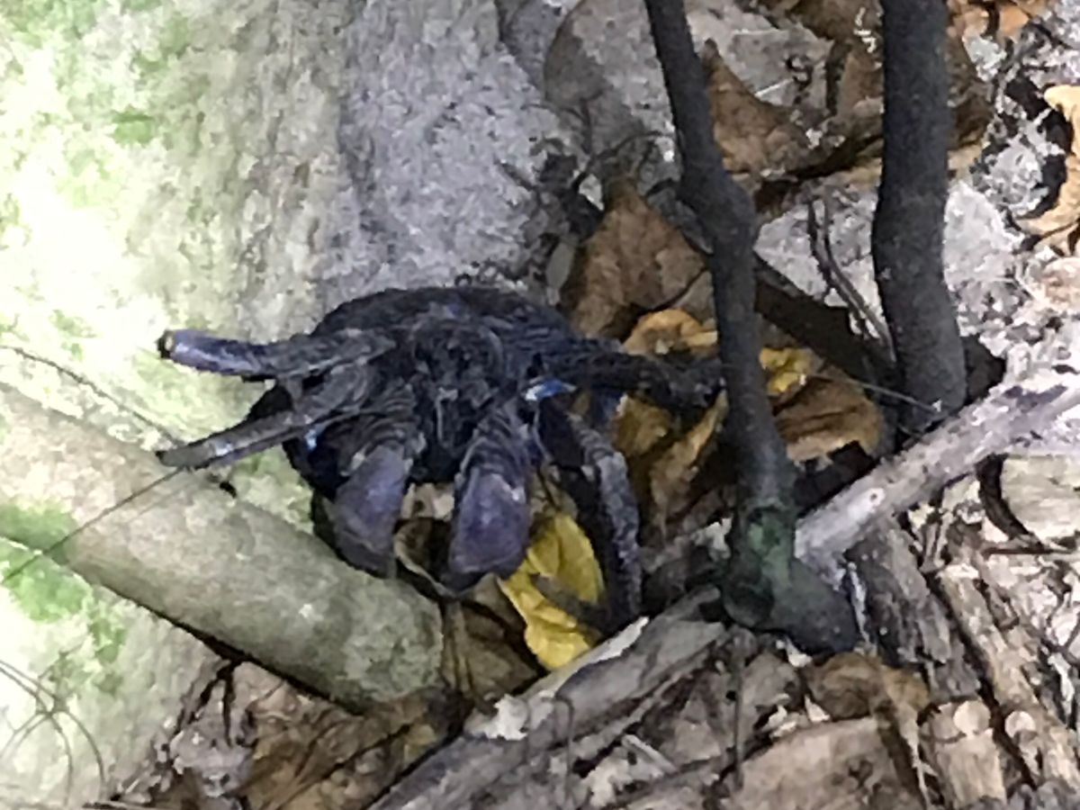 車で島の森の方へ、道中もフクロウやハブなど生き物がいないか探してくれました。森の中ではヤシガニに出会えました!ガイドの方が岩の上など居そうなところを探してくれます。