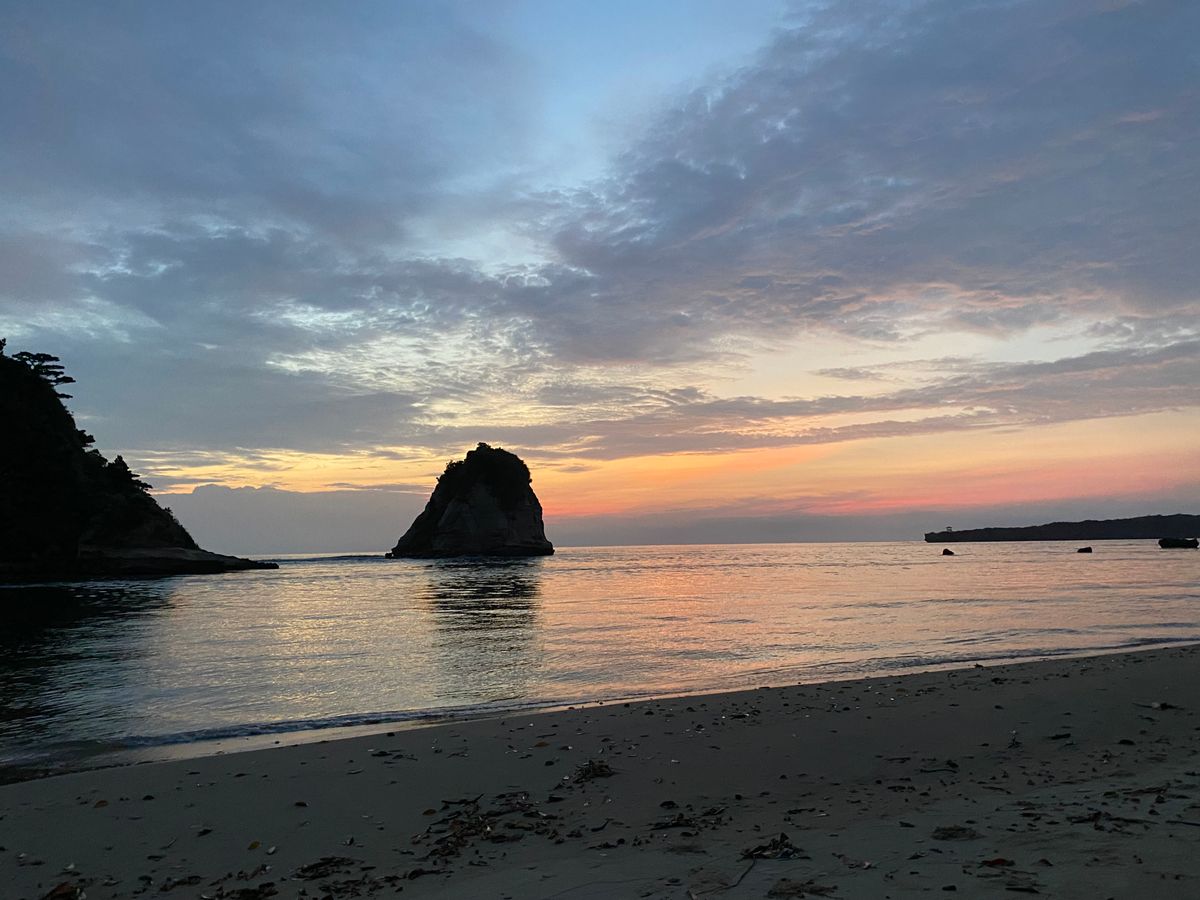 浜島に到着して1時間ほどのんびりとシュノーケリングできました。遠浅の海ですが、浅いところでもたくさん魚がいました。岩場のほうまで行くと水深が1.6~2メートルくらい?ありました。