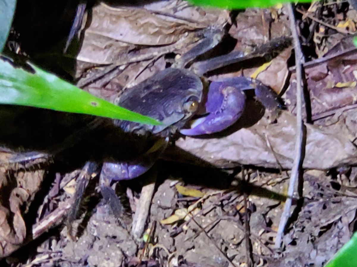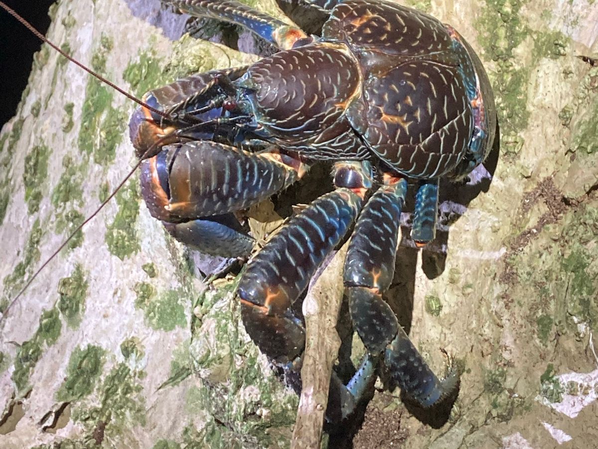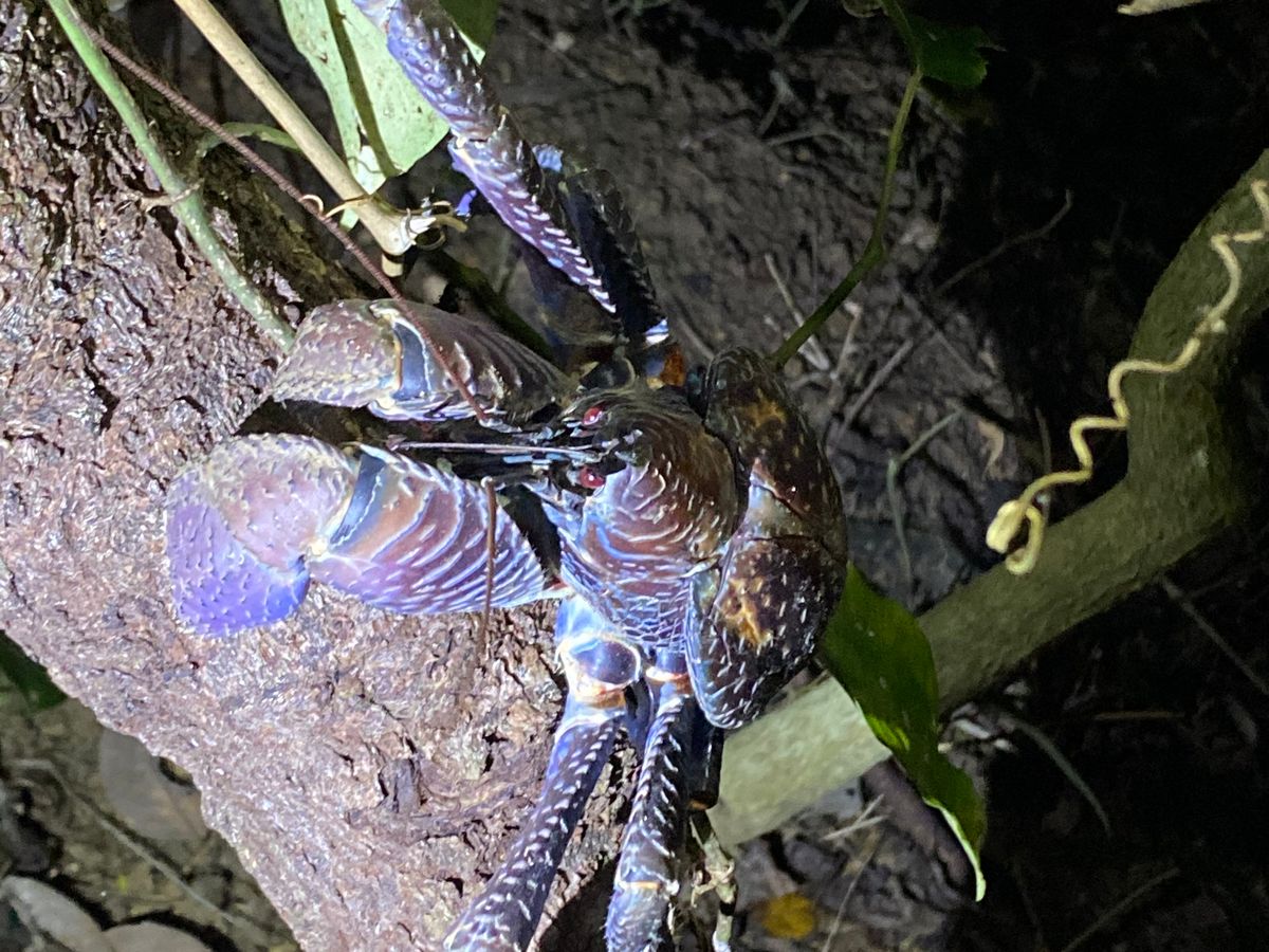 そして、私は多様な野生の生き物を見たかったのですが、目玉のヤシガニを始め、寝ている野鳥やサソリモドキなどたくさんの生き物を発見できました。