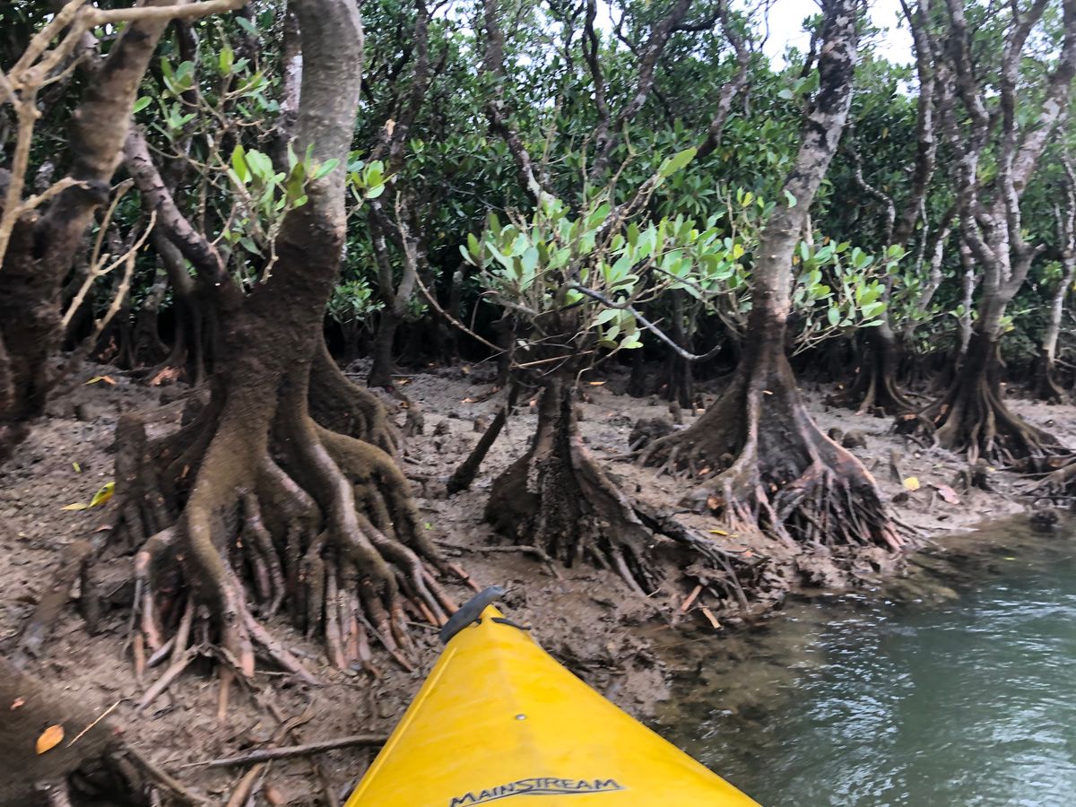 両岸マングローブに覆われている川へ入り上流へ向かいます。1人乗りカヤックはなかなか快適です。