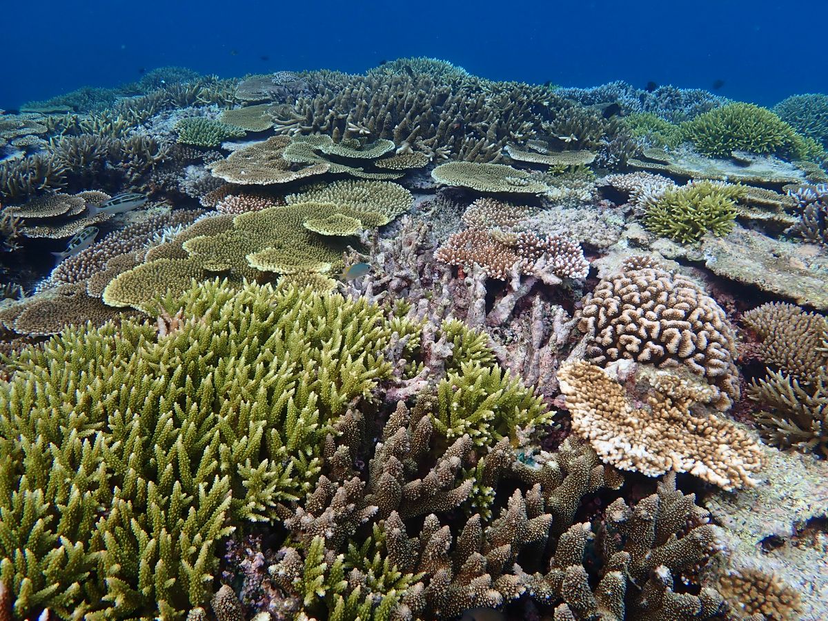 青や黄色のサンゴ、色とりどりの魚の数、カメにも遭遇できました。