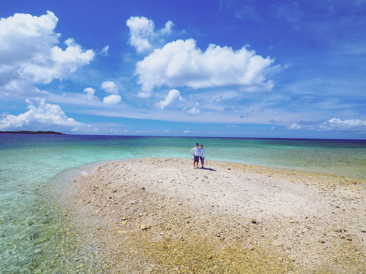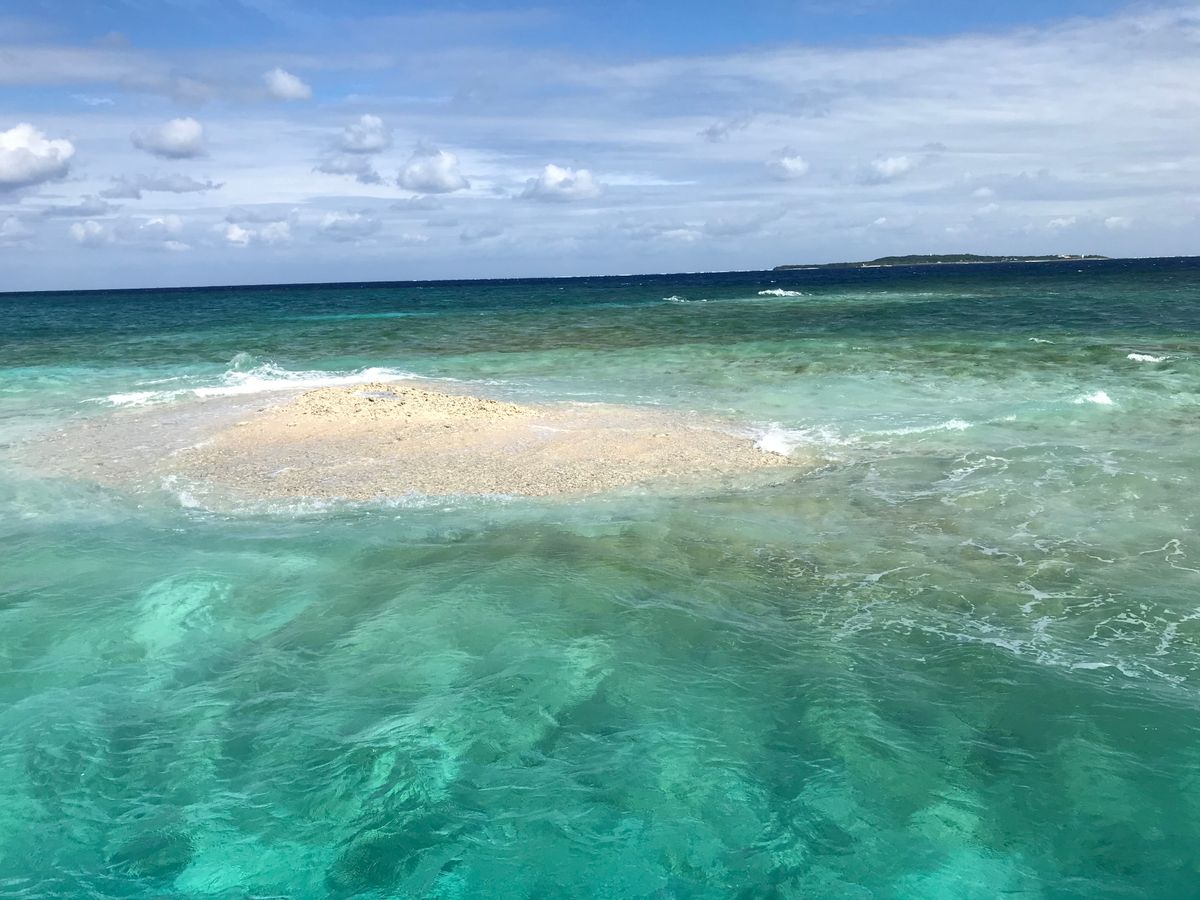 船に乗って20分くらいすると海の色がエメラルドグリーンに変わってきて、徐々に海底が見えてサンゴ礁が見えてきたら、クロワッサンの形をした「幻の島」が見えてきます。まず、その砂の白さと海の透明度の高さにまずびっくり!!