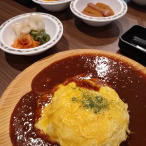 ランチのオムカレー、惣菜と飲み物が付いてリッチなランチでした。