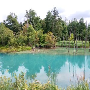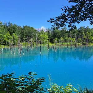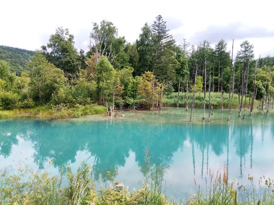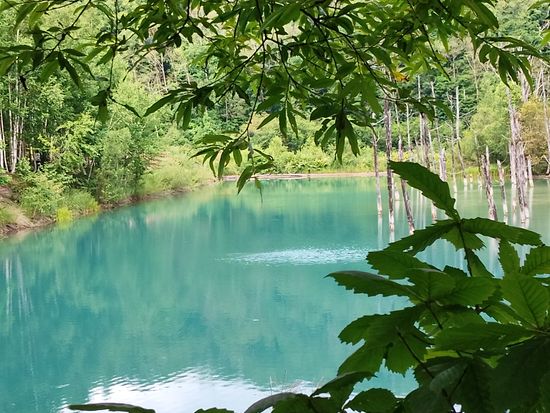 青い池は、まず、一番奥の展望テラスに行き、晴れた日には十勝岳連峰を背景に撮ると素敵な絵となります。