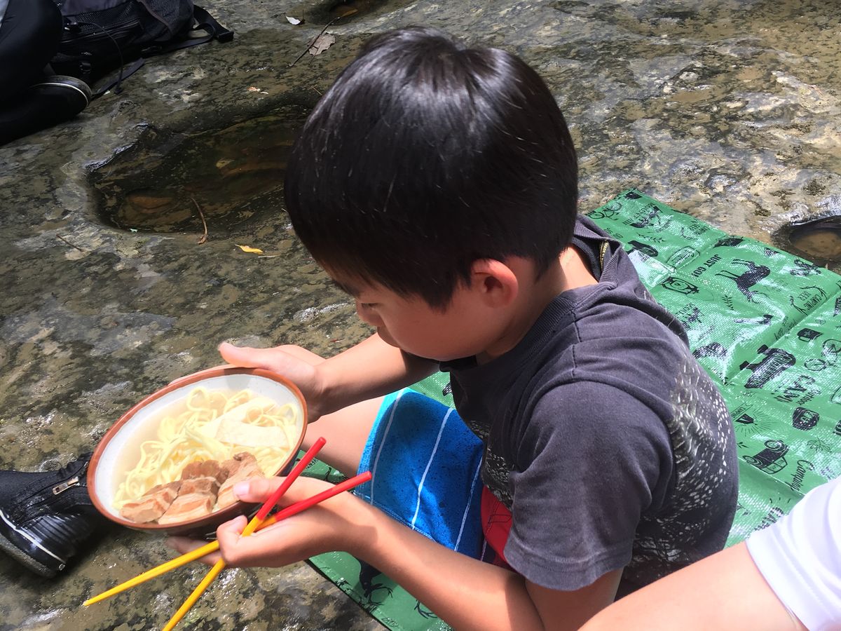 お天気が心配されましたが、前々日、前日とスケジュールについて細かく連絡があり、安心して参加することができました。お天気は心配でしたが、カヌーもトレッキングも滝つぼでの水遊びも体験でき、とても盛りだくさんで楽しいツアーでした。子どもたちが飽きてしまうのではと心配しましたが、ガイドさんとの掛け合いが楽しく、カープの応援歌なども歌いながら時間も忘れてトレッキングを楽しんでいました。