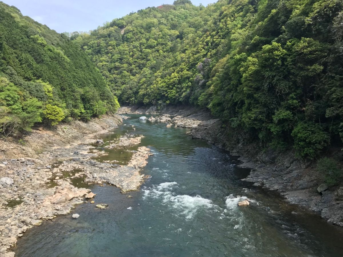 桜満開〜〜の予定が今年は開花が早く、残念ながら桜が散ってしまった後となり、あまり期待していなかったのですが、春から夏へと季節の移り変わりを思わせる新緑が とても美しく、トロッコ列車、保津川下りを通じて数時間でたっぷりのパワーを頂きました。