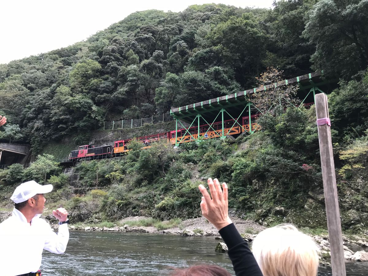 一度は体験してみたいトロッコ列車と保津川下り!両方が楽しめて、おまけに待ち時間が少なく大変効率がいいです。私達が参加した日は前日の雨量が多かった為大変スリリングな川下りが楽しめました。少し濡れましたが