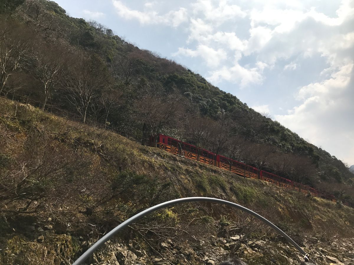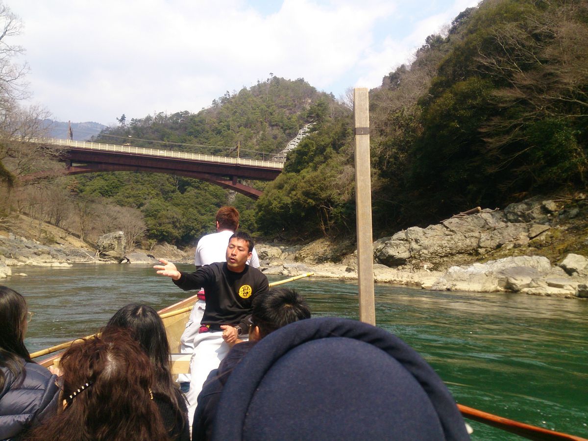 桜にもまだ早い平日なのにバスは満員御礼、トロッコも満員。さすが京都ですね… ツアーで良かった。でも景色は素晴らしかったです。保津川は船頭の兄さんの喋りが面白い。景色はもちろん急流も何か所かあって楽しめます。水量によって時間も変わるそうですが1時間半くらい飽きずに楽しみました。
