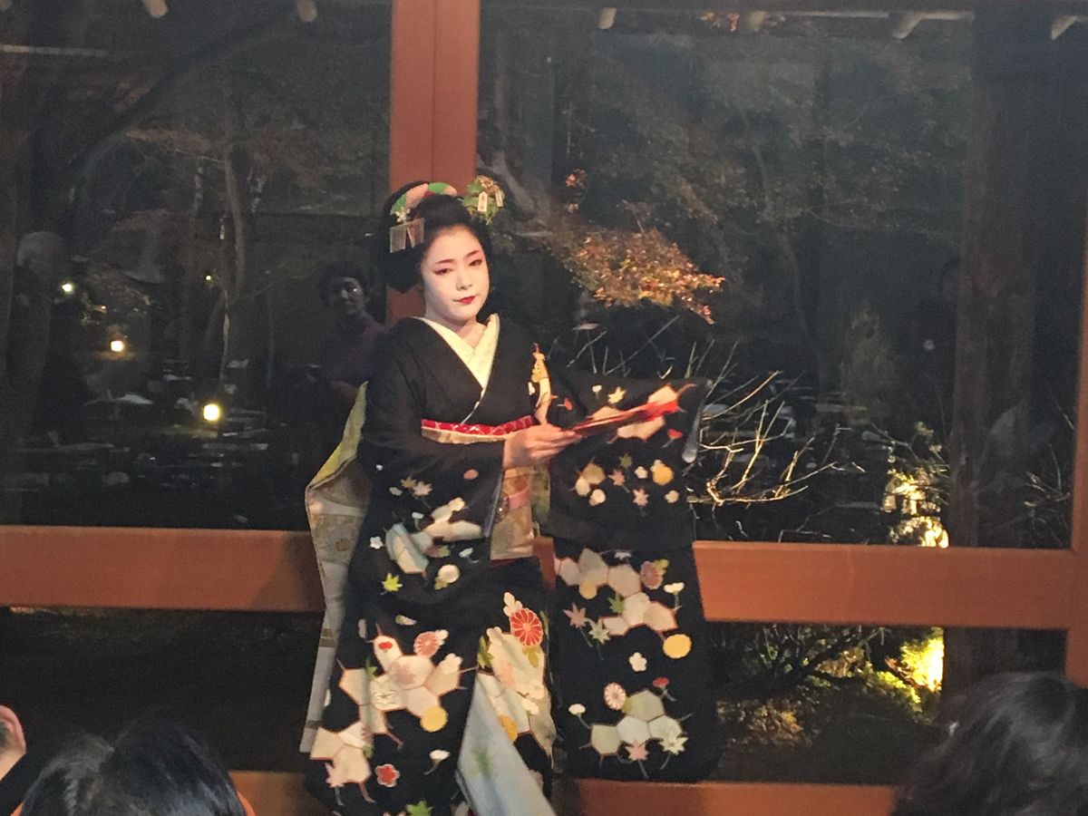 紅葉狩りで京都に行く事になり、ネットで知り申込ました。お食事の後、廊下で踊らせるのはちょっとなぁと思いましたが宮川町の里春さんの「京の四季」と「祇園小唄」丁寧に舞われてました。幼少期最初に習った踊りが京の四季でしたので懐かしかったです。しょうざんのお庭も夜景も綺麗で個人でお座敷遊びなど出来ない私と友人にとってコンパクトにまとまったツアーで楽しかったです