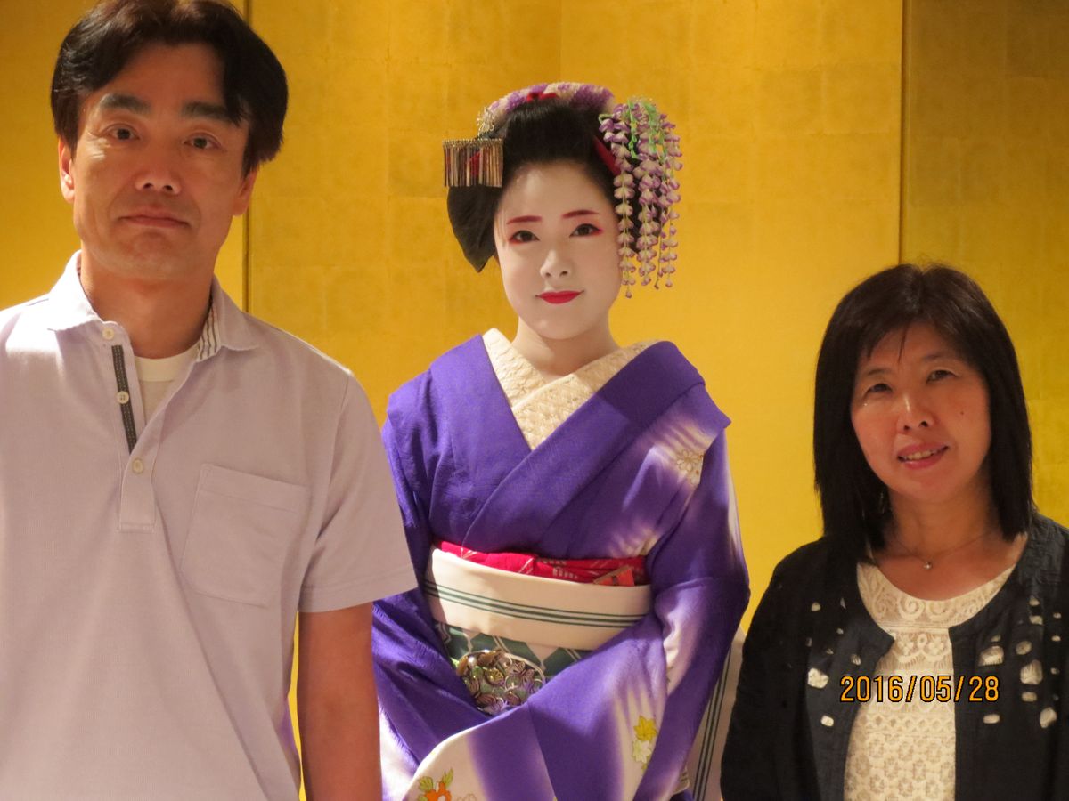 バスガイドさんから、舞妓さんの生活などもお聞きして、いざ食事そして舞妓さん登場。