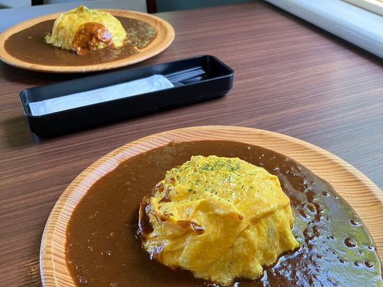 昼食はオムライスのほかに、牛乳・オレンジジュース・コーヒー・ソーセージ・マッシュポテトのフライ・漬物なども用意されていて、ボリュームもあり満足でした!