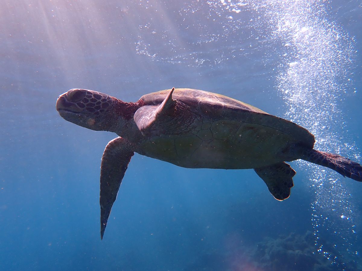 ウミガメにも何度も遭遇でき、接近できました。