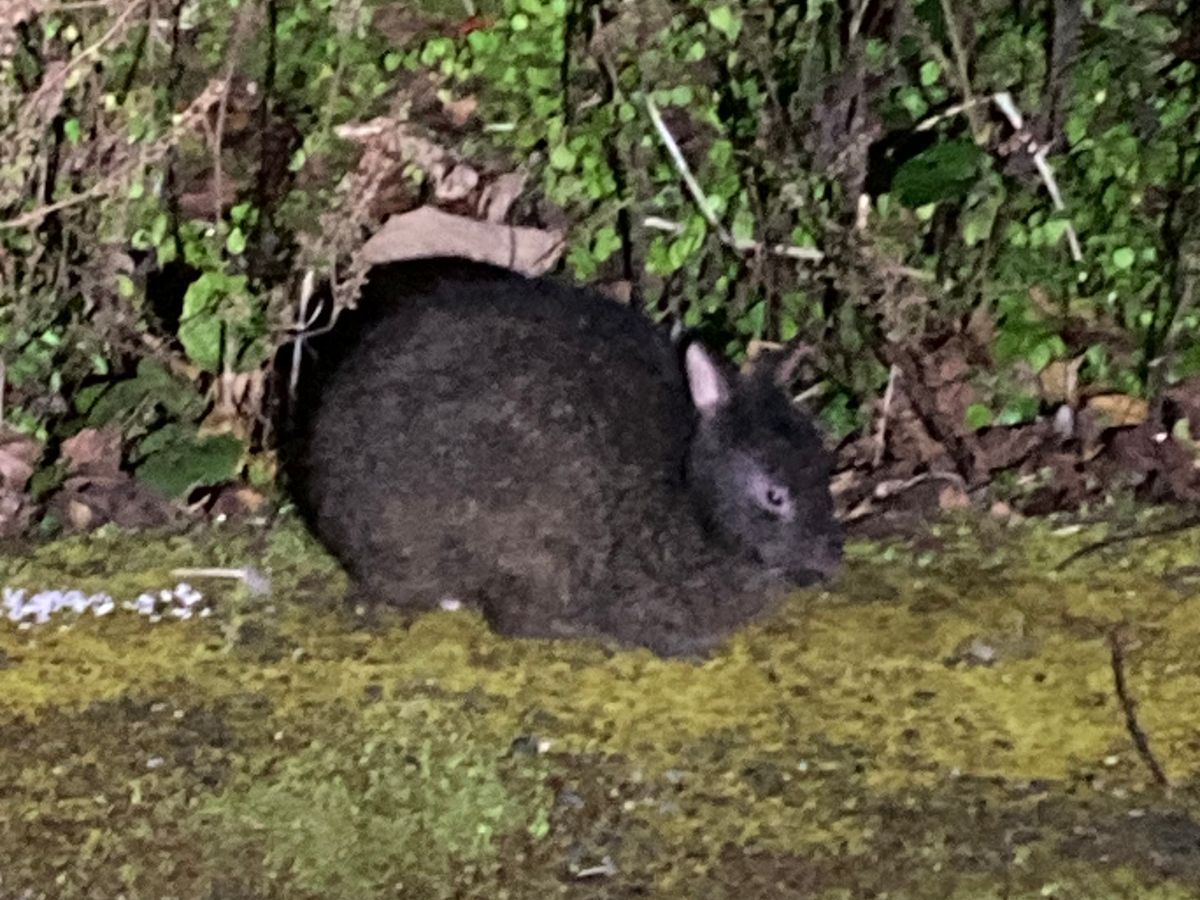可愛らしいウサギがうずくまっている いた 今晩んわ、それからは 車は、ゆっくりと、動物探し あっ いた 今度は親子かな、二羽 そんなんで、