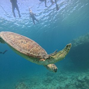 いざ海に入ってみると写真のような大きいウミガメと一緒に泳ぐことができて大満足です。