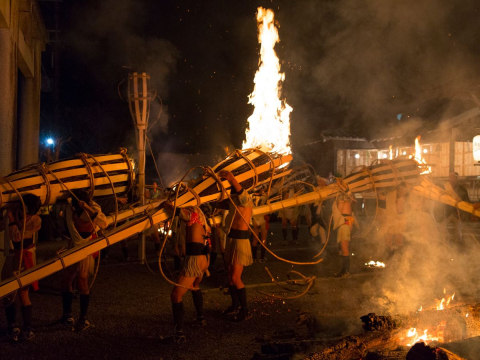ツアー自体は19時頃集合、現地には21時頃についてお祭りが終わるのが日を跨ぎ0時30分過ぎでした。神事を祀るお祭りなので物に触れる行為は禁止。(火を扱っているので間違いなく火傷します)あと灰が飛びます。汚れてもいい服装、特に夜遅くなるので気温が5度以下になるので防寒対策は必須です。(薄着で行ったら風邪ひきます)